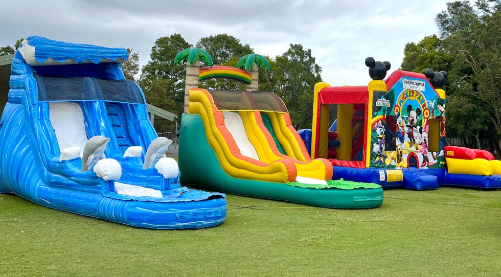 Jumping castle with water slide. Comes with 2 blowers. Dimensions 1800 wide 3000 long and 2400 high, $ 300 per day